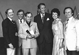 Angelo receiving the award with Australian Prime Minister Malcolm Frazer and the judging panel.