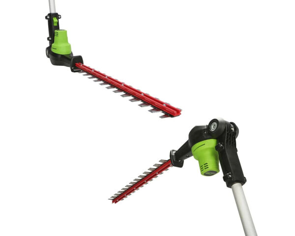 Featuring a 7 position pivoting head to make it easy to get under and above tall hedges and dual action 50cm laser cut steel blades, you’ll have the confidence to tackle the most challenging projects, all without the noise, fumes or harmful emissions.